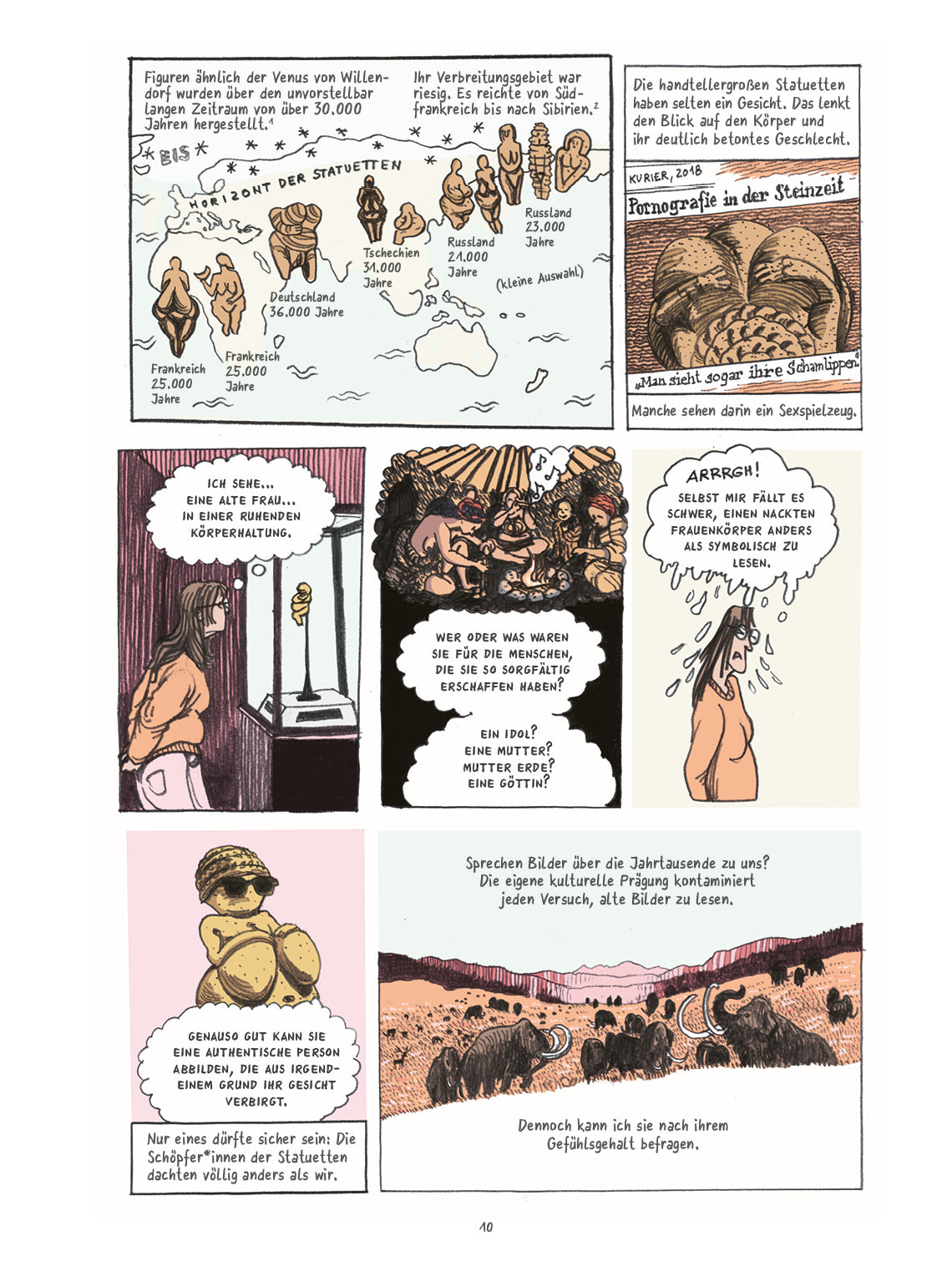 Rentiere naschen noch ein paar Fliegenpilze, ehe sie der nahenden Kälte entfliehen, ihnen voraus eine Gruppe Nomad*innen. Auf ihrem Weg ins Winterlager unternehmen sie eine letzte große Jagd… Kinder werden geboren, andere sterben, die Venus von Willendorf wird geschaffen. Doch zeigt sie wirklich eine Göttin? Oder war sie Werkzeug der Schamanin, ein Avatar zur Reise durch Geisterwelten, wie sie sich bis heute in Mythen und Märchen finden?