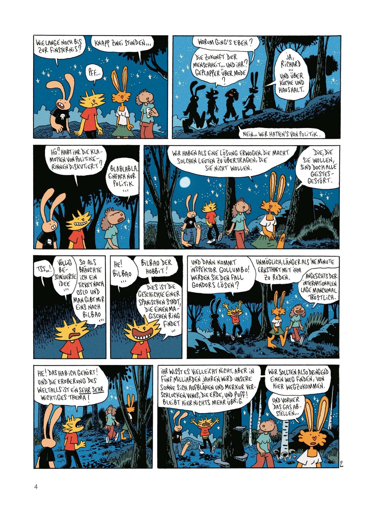In einer lauen Nacht treffen sich Herr Hase und seine Freund:innen in einer Burgruine, um die bevorstehende Mondfinsternis zu beobachten. Mit dieser Idee sind sie allerdings nicht allein: In dem alten Gemäuer tummeln sich auch einige arabischstämmige Nachtschwärmer, eine Gruppe jüdischer Kumpels, ein schwer bewaffneter Rocker-Club und hochgradig verspulte Rollenspieler:innen. Spannungen liegen in der Luft. Dabei haben unbemerkt schon viel schlimmere Ereignisse ihren Lauf genommen!